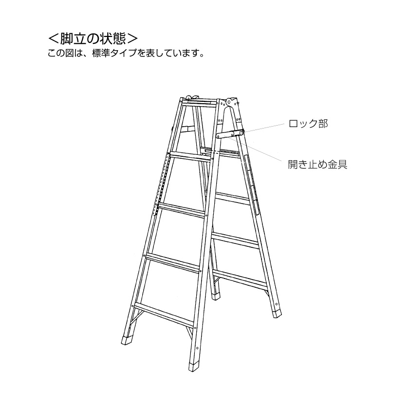 開き止め金具のロックが不十分な状態で使うと脚が開閉し、転倒や転落の恐れがあります。